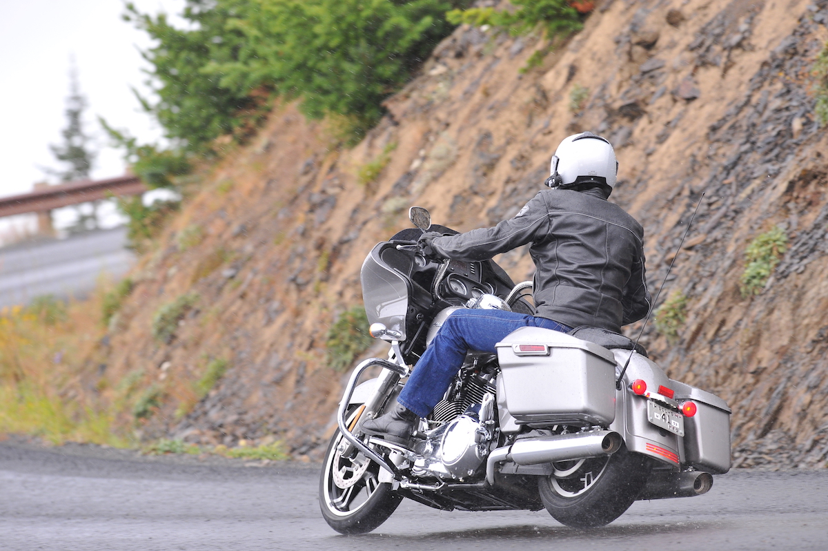 Awful Dunlop Multi-Tread Blackwall tires are awfully awful in the wet, but that’s not Harley’s fault. The Dunlop touring tires one finds standard on