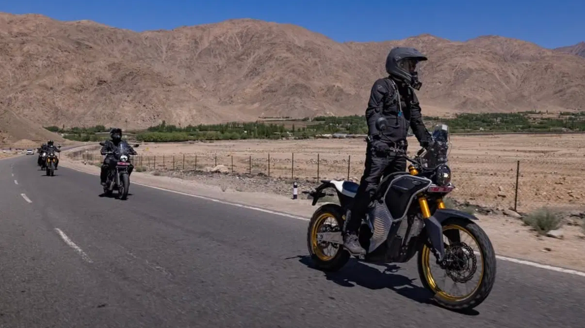 The electric Himalayan’s design is also improved over the earlier prototype. It has shaped side panels at the front with tubular protection around them. It also looks bigger and wider, possibly due to the new battery layout, which might mean it has more cells for a longer range.